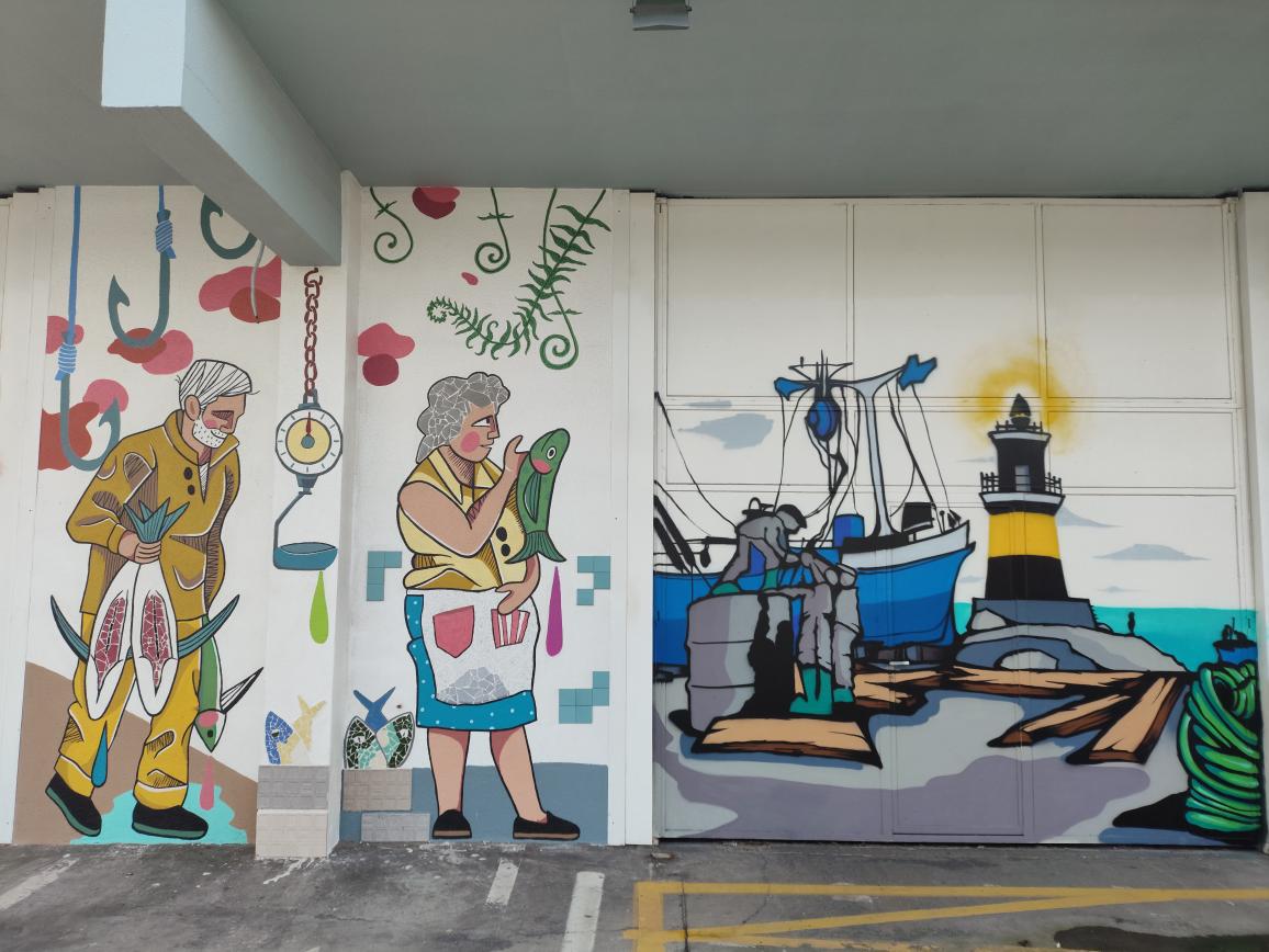 Dentro do actos de conmemoración do centenario da Confraría de Pescadores San Xoán Bautista levados a cabo noa no 2024, realizáronse en dúas das fachadas do seu edificio uns murais decorativos.