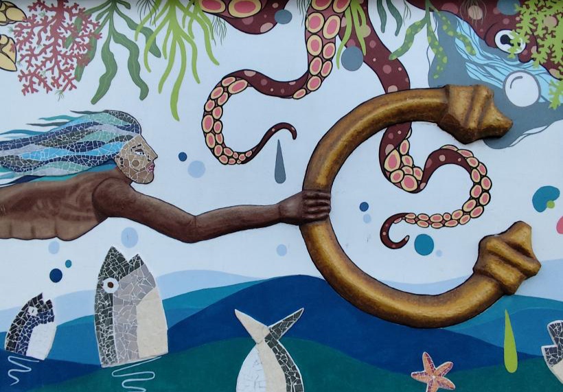 PINTURAS MURAIS. En Burela mestúrase o moderno co tradicional, as pinturas murais do Museo de Arte ao Aire Libre, creadas a partir do ano 2017, coas pinturas murais do gótico tardío da Igrexa da Vila do Medio, datadas a finais do século XV.