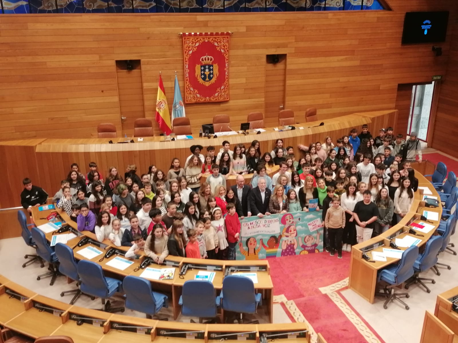 Burela, 29 de novembro de 2023. O Grupo de Participación Adolescente do Concello de Burela vén de participar nos actos celebrados con motivo do Día Mundial da Infancia no Parlamento de Galicia. Alí expuxeron as conclusións do traballo feito no III Encontro Galego de Consellos Locais de Participación Infantil e Adolescente, sendo María, a portavoz do GPA de Burela, a encargada de pechar as intervención.