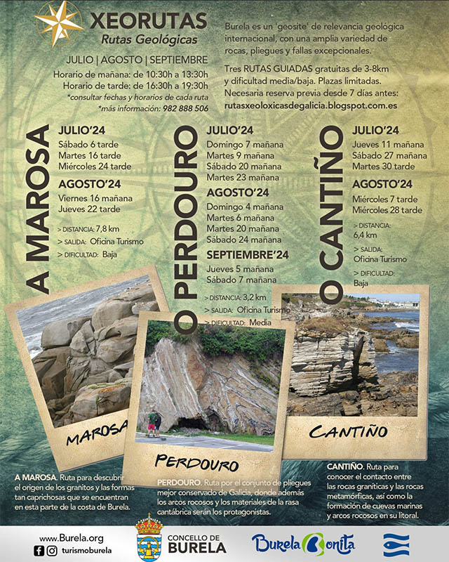 - O Concello de Burela ofrece rutas guiadas a A Marosa, O Perdouro e O Cantiño, así como visitas para coñecer elementos patrimoniais ou relacionados co mundo da mar dentro da vila